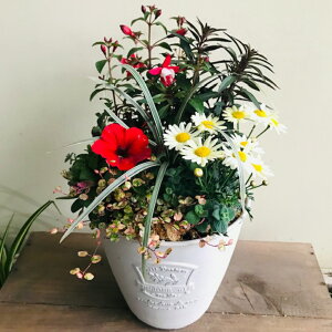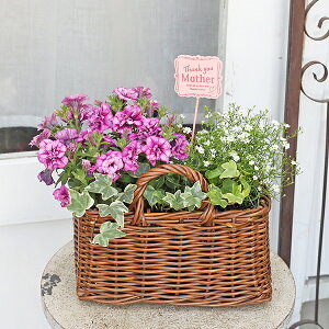 大人かわいい おしゃれ 明るく 華やかに オーダー寄せ植え 季節の花を大人かわいい、おしゃれな雰囲気に寄せ植えをお作りします。 容器はナチュラルおしゃれなバスケットかご。 (バスケットサイズ W21×L12.5×H18cm...