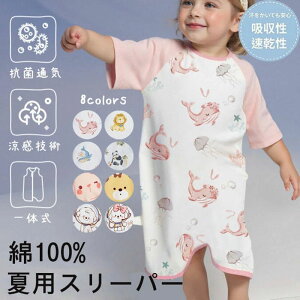 総柄 夏 綿 ショートロンパース スリーパー 夏用 夏 子供の寝袋 ガーゼ 2重 半袖 ガーゼ 冷房対策。