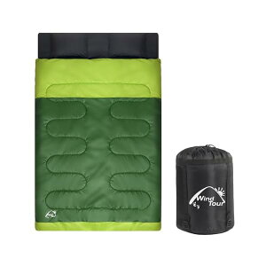 【送料無料】ダブル寝袋 枕2個付き 軽量 保温 防水 寝袋 2人用 スリーピングバッグ 防災用 車中泊 キャンプ 収納パック付 (グリーン-2.0 kg)ブランド色グリーン-2.0 kgモデル商品説明【商品概要】2人用設計:...