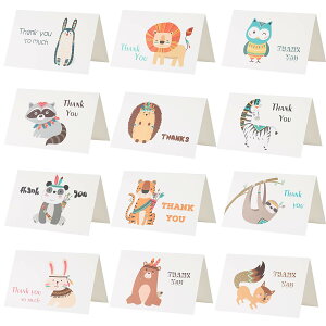 セット内容:24枚(2枚/デザイン)、24枚封筒付き、24枚封筒テープ付き サイズ:15*10cm(2つ折り状態)、15*20cm(展開状態) シンプルで可愛い動物のデザインであり、グリーティングカード...