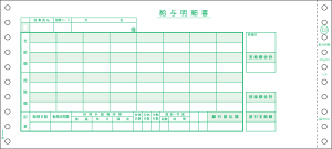 【商品説明】●入数:1,000セット●サイズ:11_2/10×5(284×127mm)●ミシン目切り離し後のサイズ:10_7/10"×5"(272×127mm) ●複写枚数:3 ●項目名:1,給与明細書;2,給与明細書;3,給与明細書