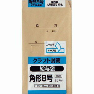 [商品説明] 〇丈夫なクラフト封筒です。 〇給与袋 〇ワンタッチ式テープ付きで便利♪ [商品仕様] 〇角形8号 〇サイズ:119×197mm 〇重量:85g/平方メートル 〇内容:23枚入り※商品は自...