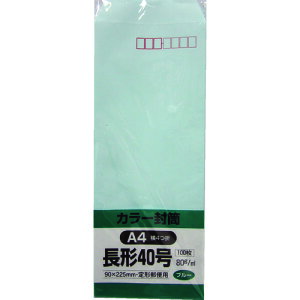 ーション 封筒 ソフトカラー 長形40号 100枚 ブルー N40S80B本体サイズ:90mm×225mm【サイズ】A4横4つ折り用【内容量】100枚入【紙厚】80g【本体色】ブルー定形封筒 A4四つ折サイズ用...