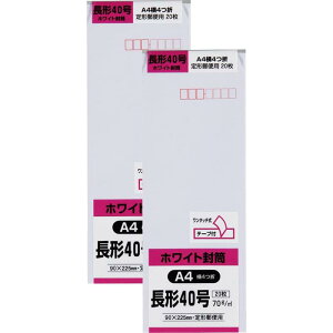 キングコーポレーション 封筒 ホワイト 長形40号 70g テープ付き 20枚入 2セット N40W70SQ-2【折って入れる用紙】A4横4つ折り【入数】20枚入×2セット【サイズ】長形40号(90×225m...