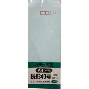ーション 封筒 ソフトカラー 長形40号 100枚 ブルー N40S80B本体サイズ:90mm×225mm【サイズ】A4横4つ折り用【内容量】100枚入【紙厚】80g【本体色】ブルー定形封筒 A4四つ折サイズ用...