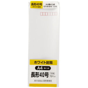 マルアイ 封筒 長形40号 長40 白封筒 ホワイト 100枚 トク-1239X22.5cmA4サイズ横4つ折りに最適なクラフト封筒(白)です。郵便枠印刷あり。長形40号(90X225mm)。定形郵便...