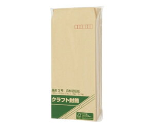 商品名:寿堂 森林認証紙封筒(サイド貼り) 1枚 581●規格:長3/〒枠付●サイズ:縦235×横120mm●紙厚:70g/m2●材質:FSCクラフト紙(古紙40%使用)●仕様:サイド貼り
