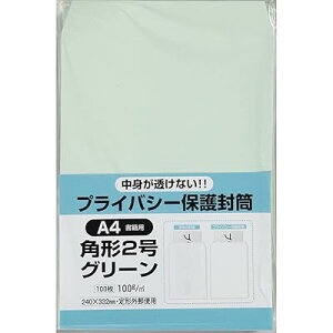 サイズ:角2◆商品名:キングコーポレーション 封筒 プライバシー保護 角形2号 グリーン 100枚 K2PB100G240×332mm【サイズ】A4(ちょっと大きめ)【内容量】100枚入【紙厚】100g【仕様】サイド貼り中身が透...