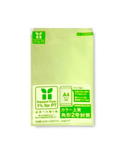 ・パッケージ個数:1・240x332mm・角形2号・100枚入/パック・紙厚:90g/角2サイズのカラー封筒です。(若草色) 裏面サイド貼り。1パック100枚入りです。
