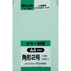 グリーン 角2・【サイズ】A4(ちょっと大きめ)・【内容量】100枚入・【紙厚】100gソフトな色合いのカラー封筒 用封筒 A4サイズ用 用封筒 A4サイズ用 【主要サ...