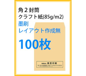 封筒印刷 角2 角形2号(A4用紙がそのまま入ります)クラフト封筒に黒1色で名入れ印刷します。 プロの印刷会社が作るオリジナル商品です。 〇価格表(税込・200枚以上で送料無料) 100枚:2200円...
