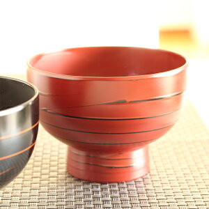 和の黒と和の赤の落ち着いたデザインの大きいサイズのお椀です。 内黒と内朱の2色からお好きなカラーをお選び下さい。 【内容量】 汁椀 1個 【サイズ】 直径13.6cm×高さ9.8cm 重量:210g 容量:すりきり700ml ソフトメ...