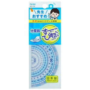 W119×H60×D1mm 重量 10g 素材 再生PET樹脂(100%) 特長 ・先生おすすめ定規シリーズの分度器。握力が弱い子どもでもおさえやすく、ズレにくい。 ・適度な厚みと柔軟性で教科書、ノートにそわせやすい...