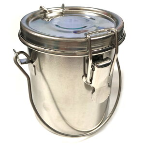 サイズ:底部直径約70×高さ85mm(蓋除く) 材質:ステンレス製 ロック式の金具で蓋を密閉できますので、持ち運びの際に筆洗油が漏れ出すことはありません。 内部に油こし用の金網がセットされています。 内部の金網には筆をしごくためので