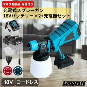 電動スプレーガン 充電式&高性能モデル コードレス設計の電動スプレーガン マキタ18V/14.4Vバッテリー対応 場所を選ばず様々な場面で使用可能 マキタ18V/14.4Vバッテリーに対応した電動スプレーガン。コードレス設計により、場...