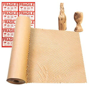 発泡ロールの包装や落花生の包装など、緩衝材の緑色の代替品です。 食器緩衝材を延伸すると、ハニカム構造は緩衝性能を高め、壊れやすい物品に有効な保護を提供することができます。 引っ越し 緩衝材割れやすいシールが20個付いている