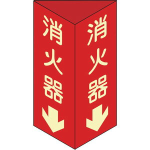 ・広範囲からの視認が可能な、消火器の設置場所を示す三角柱タイプの標識です。・屋内用。・消火器設置場所の明示に。・表示内容:消火器(蓄光タイプ)・取付仕様:両面テープ・縦(mm):240・横(mm):80...