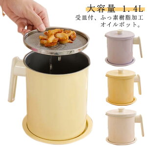 受皿付、ふっ素樹脂加工オイルポット。お手入れしやすいふっ素樹脂加工。ベタつくオイルポットも清潔にお使いいただけます。蓋付で酸化を防ぎ、油こしで使った油もクリーンに再利用。エコで便利なオイルポットです。細かいメッシュで