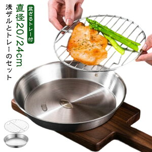 浅ザルとトレーのセット 耐水性、耐蝕性に優れたステンレス製 食材の下ごしらえから油切りまで一括で行えるので、揚げ物料理に便利です!足付なのでシンク面に直接触れず、水切りもしやすい 自動食器洗浄機可 サイズ 直径20cm 直径24cm サ