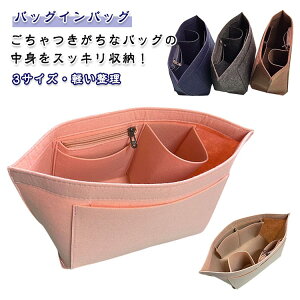ごちゃつきがちなバッグの中身をスッキリ収納!中に仕切りのないバッグでもきれいに整頓が可能しっかりとしたフェルト素材だから中に入れるだけでバッグが自立します。バッグを変える際もこのバッグインバッグを入れ替えるだけで移し