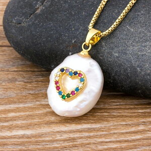 予めご了承くださいませ。商品名ファッション カラフル CZ パヴェ 小さい ハート チャーム 淡水 パール コイン チェーン シック ペンダント チョーカー ネックレス レディース ジュ
