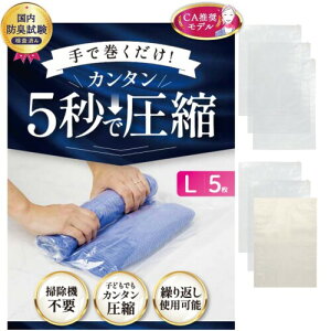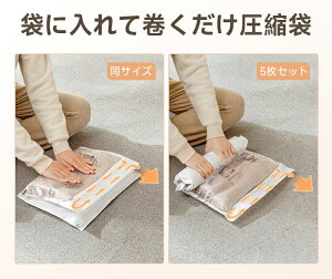 衣類圧縮袋 最大 70%圧縮 (国内防臭試験検査済み 簡単5秒で圧縮) 旅行・出張・衣替え 独自の 密閉素材 【クルクル巻くだけ!簡単5秒で圧縮】圧縮の簡単さにこだわり開発しました。素材は特殊な小さい気孔...