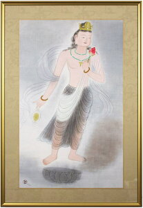 ■観自在 観音菩薩像を描くことに画家としての達成を 求めるかの如く制作した小倉遊亀先生。 本作は70歳を過ぎてからの代表作です。 彩美版により、繊細な筆遣いや上品な色彩まで 再現し、一枚ずつ手作業でシルクスクリーンを