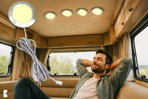 ダウンライト12Vは、6500Kの明るさで車内の足元照明に適しています。直径68mm、厚み14mm、ケーブル長さ2mで、暖色系のホワイト光を放ち、快適な照明環境を提供します。C12V対応のため、キャン...