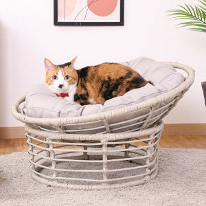 通気性ラタン構造: 天然ラタン素材を使用した通気性抜群の猫ベッド。優れた吸水速乾性と放熱効果により、ひんやりとした冷却タッチを実現。暑い季節でもペットが快適に過ごせる涼しい休息空間を提供し、自然素材ならではの温度調節機能で室内環境に調...