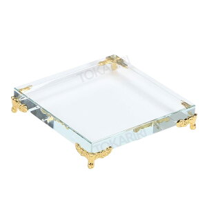 「素材:K9クリスタルガラス」透明度が高く、アクリルよりも重厚感のある高品質ガラス素材。光の反射で美しく輝きます。「装飾脚付き」四隅にはアンティーク調のゴールド脚を採用。高級感と安定感を両立。「幅広い用途」仏像・パワー