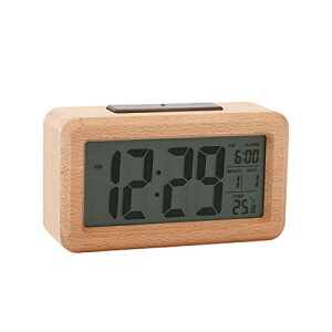 大画面液晶と木製フレームが特徴のデジタル目覚まし時計です 大画面ディスプレイなので文字が大きく優れた視認性 時間、日付、曜日、温度が全て一目で確認できます 上部のボタンは大きくて押しやすい設計で押すとバックライトが点灯し