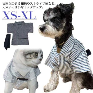 雰囲気のある和柄やストライプ柄など、元気いっぱいなドッグウェア。夏にぴったりな甚平です。暑い季節でも涼しく、着やすい生地使用。ご家族様とリンクコーデを楽しんでいただけます。お祭り・イベントやお出かけ、毎日のお散歩でも