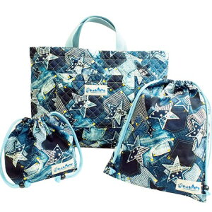 オシャレな星柄の入園、入学グッズの3点セット。 レッスンバッグ、巾着袋、お弁当袋です。 ★3点セット 1.レッスンバッグ(キルティング):幅 約40cm×高さ 約30cm(持ち手の高さ 約10cm) 2.巾着(大):幅 約28cm×高...