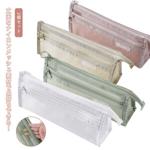 丈夫なナイロンメッシュ素材で長持ちできる!派手すぎない地味すぎないお洒落なペンケース2個セット。メッシュ生地だから滑りにくく半透明で中身の確認ができる。友達とお揃いも素敵な透明ペンケース。受験用にも大活躍!ファスナーの