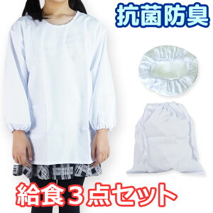 子供用学校給食着 給食帽 給食袋 3点セット 安心の抗菌加工の給食着と給食帽、給食袋の3点セットです。 給食着は120,130,140,150,160の5サイズからお選びいただけます。 (給食帽と袋は1サイズです)...