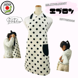日本製キッズエプロン(ミルキーポルカドット)/120〜170cmサイズ対応/洗える綿100%/子供が自分で着られる/男女兼用/小学校/給食/調理実習 お子さまの「自分で着られる」を叶える、国内仕立てのキッズエプロン...