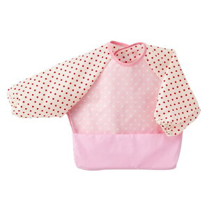 商品名お食事エプロン 長袖タイプ ポルカドット・ピンク商品の特長1.裾を折り返せばポケットが完成赤ちゃんとお洋服を汚れからしっかり守ってくれる長袖タイプ。裾をくるっと折り返せばポケットになり、食事中の食べこぼしをキャッチし