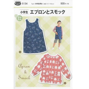 ●タイプ:こども男女(身長113〜155cm)調理実習やお習字にフル活用!エプロンはひも結びがなく、着るのが楽なタイプ。スモックは衿ぐりと袖口にゴムを入れたラグラン袖。手づくり初心者ママ応援パターン。...