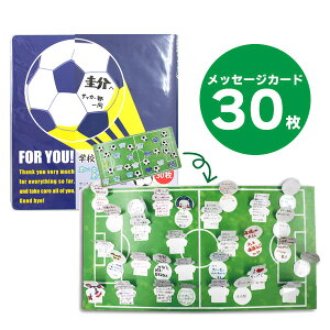 追加のメッセージカード10枚入は下記をクリック♪ 色紙を開くと思い出深いチームそのままの様子が広がります。 サッカーボール、ユニフォームの形をしたカードにメッセージと名前を書いて貼りましょう。 【内容】 ・色紙 ×1枚 ・メッセ