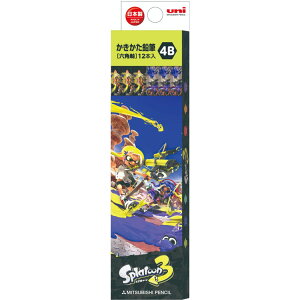 スプラトゥーン3 鉛筆 六角軸えんぴつ4本セット4B uni。新入学 三菱鉛筆 新学期準備文具。小学生 キャラクター グッズ。