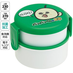 小さな丸型のシンプル2段お弁当箱。コンビニの丸型おにぎり1個が袋のまますっぽり入ります♪上段下段とも、ごはんがつきにくい「くっつかない加工」が施されています。内蓋収納フォーク(プラスチック製)付き。食べ終われば1段にコン