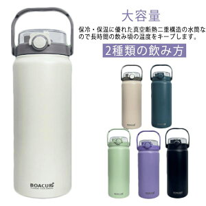取り外せるショルダーストラップ付き 斜め掛け 肩掛け可能 持ち手付き マイボトル 大容量 水筒 ワイド口径 直飲み