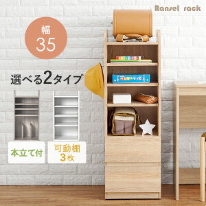 お買い物ガイド ランドセルの定位置に! ランドセルラックのスリムタイプ。 【Aタイプ(本立て付き)】 本を立てられるブックエンド付き。 教科書やA4ファイルなどを立てて収納できます。 【Bタイプ(自由な可動棚)】 13段階で棚板の調節が可