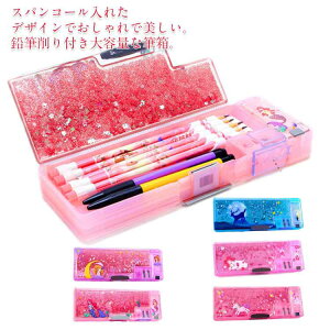 スパンコール入れたデザインでおしゃれで美しい。鉛筆削り付き大容量な筆箱。たっぶり収納できる2ドアタイプ!表側には、細めから太めの鉛筆、丸軸・三角軸・六角軸どのタイプの鉛筆にも対応している、5本差しホルダー付です...
