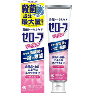 【【医薬部外品】ゼローラ マイルドミント 90gの商品詳細】 【商品特徴】 ●殺菌成分※高配合ハミガキ(メーカーハミガキ比) ※塩化セチルピリジニウム、イソプロピルメチルフェノール、ラウロイルサルコシンNa ●3種類の殺菌成分が、お口