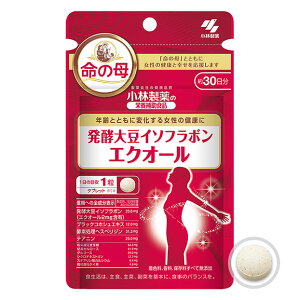 ※パッケージデザイン等は予告なく変更されることがあります。【商品説明】「小林製薬 命の母 発酵大豆イソフラボン エクオール 30粒」は、発酵大豆イソフラボン(エクオール含有)配合、年齢とともに変化する女性の健康を応援する栄養補