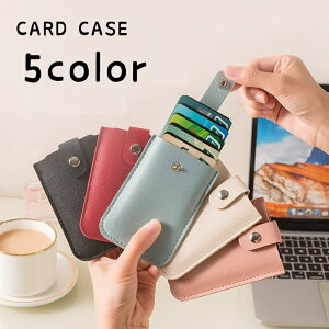 カード収納コンパクトながらもたっぷり収納できるスリムなカードケース。全部で5個のポケットがあり、1ポケットに2枚入れられるので最大10枚収納可能です。\飛び出し防止のスナップボタン付き♪/引き出しポケットスナップボタンで開