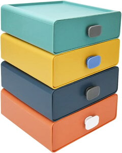 4段ボックス 引き出しケース 小物収納 カラフルデザイン 卓上 文房具 事務用品 化粧品 ギフト