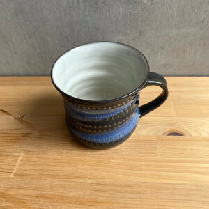 】福岡県小石原の陶土にこだわり、1点1点手作りで作り上げたカップに先代から受け継ぐ藍釉を施したマグカップです。鉄釉薬の部分は元炭鉱跡から染み出す鉱石をオリジナルにて製生し仕上げた釉薬