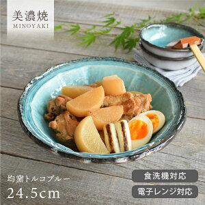 商品名 均窯トルコブルー手作り風大鉢 商品詳細 【サイズ】24.5cm×24.5cm×高さ6.8cm(※全て外寸です) 【重さ】912g (※サイズと重さは商品ごとに誤差がございます) 【材質】陶器 ※日本製(美濃焼) ※電子レンジ、...